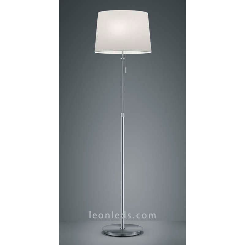 Lámpara de Pie de color Níquel Mate con una pantalla redonda textil de color blanca, en el interior se pueden instalar 3 Bombillas de LED con rosca E27 y formato A60-A67, incluye 1,6 metros de cable. Esta Lámpara de pie se puede regular su altura desde los 138Cm hasta 180Cm, el resto de las dimensiones se pueden ver en una de las fotos. Elige una Bombilla LED con casquillo E27, y ahorra hasta un 70% en la factura de luz.