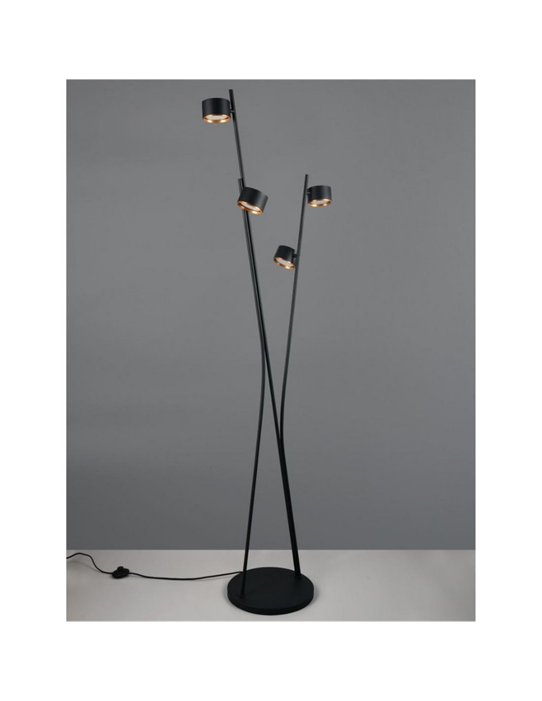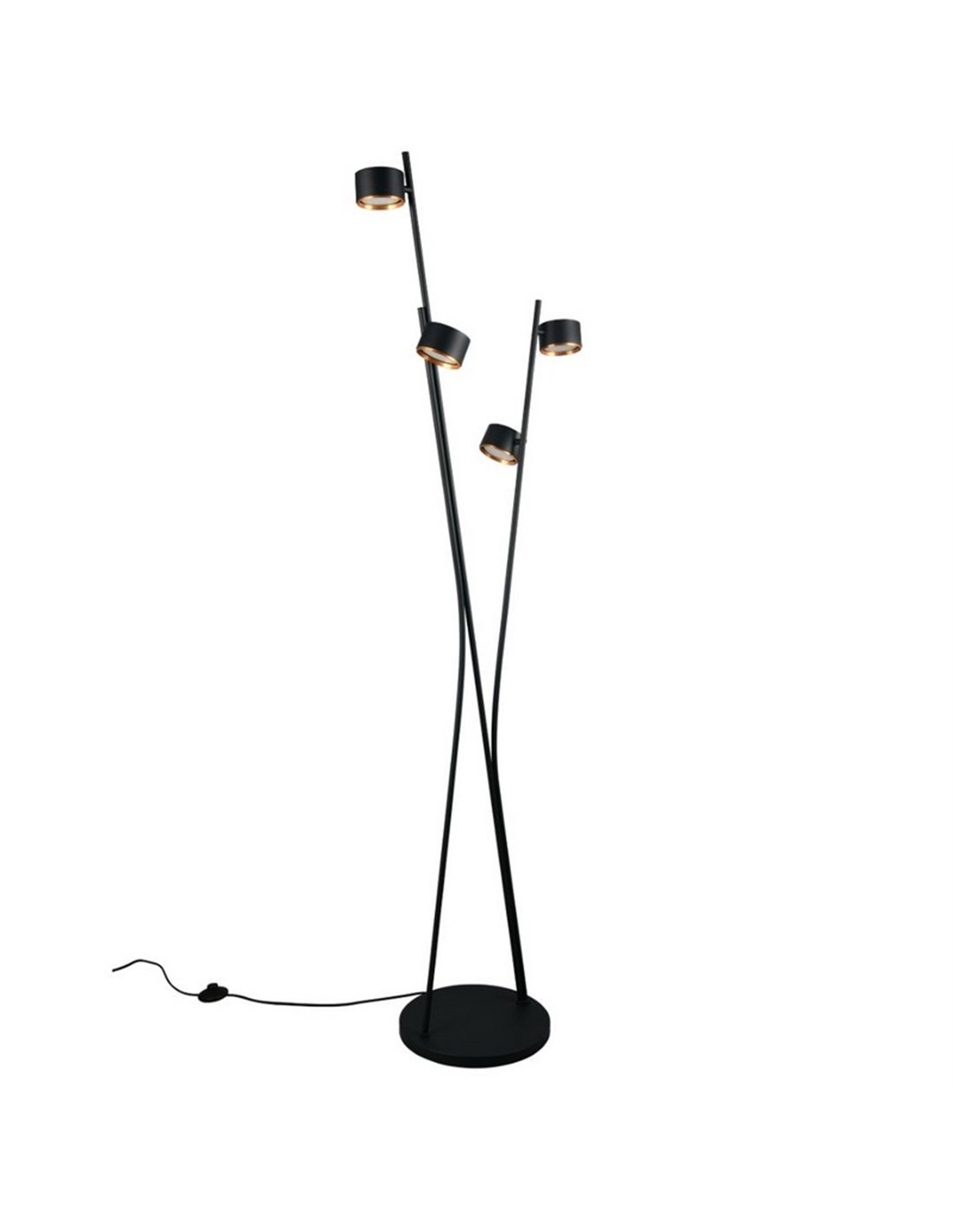 Lámpara de pie CODA con 4 focos orientables negro/dorado