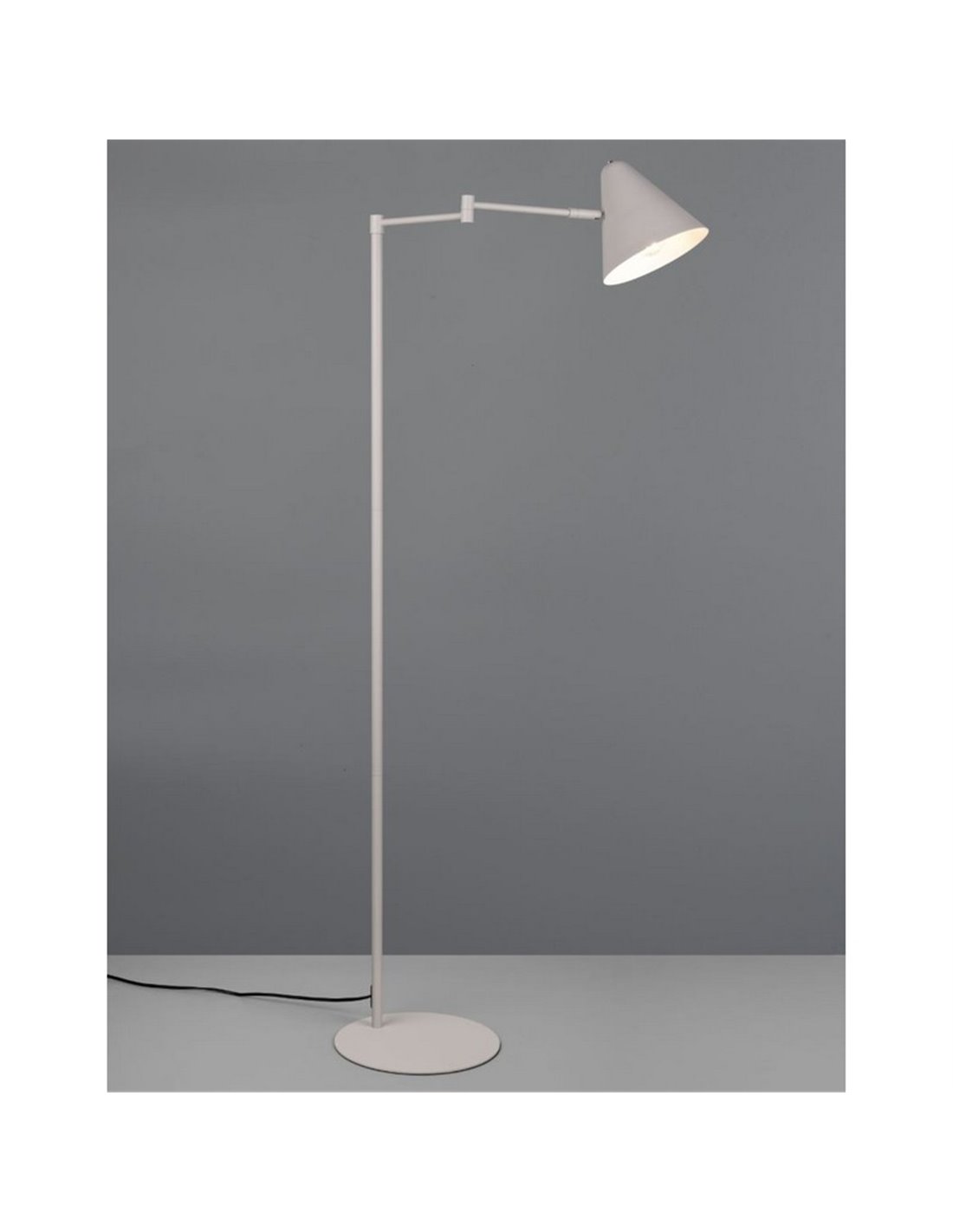 La lámpara de pie COSIMA gris combina diseño moderno, funcionalidad y elegancia. Fabricada en metal con pantalla orientable, permite ajustar la dirección de la luz para crear el ambiente perfecto. Ideal para salones, despachos o rincones de lectura. Usa bombilla E14 (no incluida). Protección IP20.