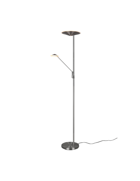 La lámpara de pie de color niquel mate modelo Brantford es capaz de trabajar a dos potencias: 6,5 W (650 lúmenes) o 30 W (3.500 lúmenes) para generar temperaturas de color entre 2700K, 3200K y 4000K en todos los casos. Disfruta de diferentes tonos de iluminación naturales, cálidos o naturales. Es un producto que encaja muy bien en estancias como salones, despachos o dormitorios.