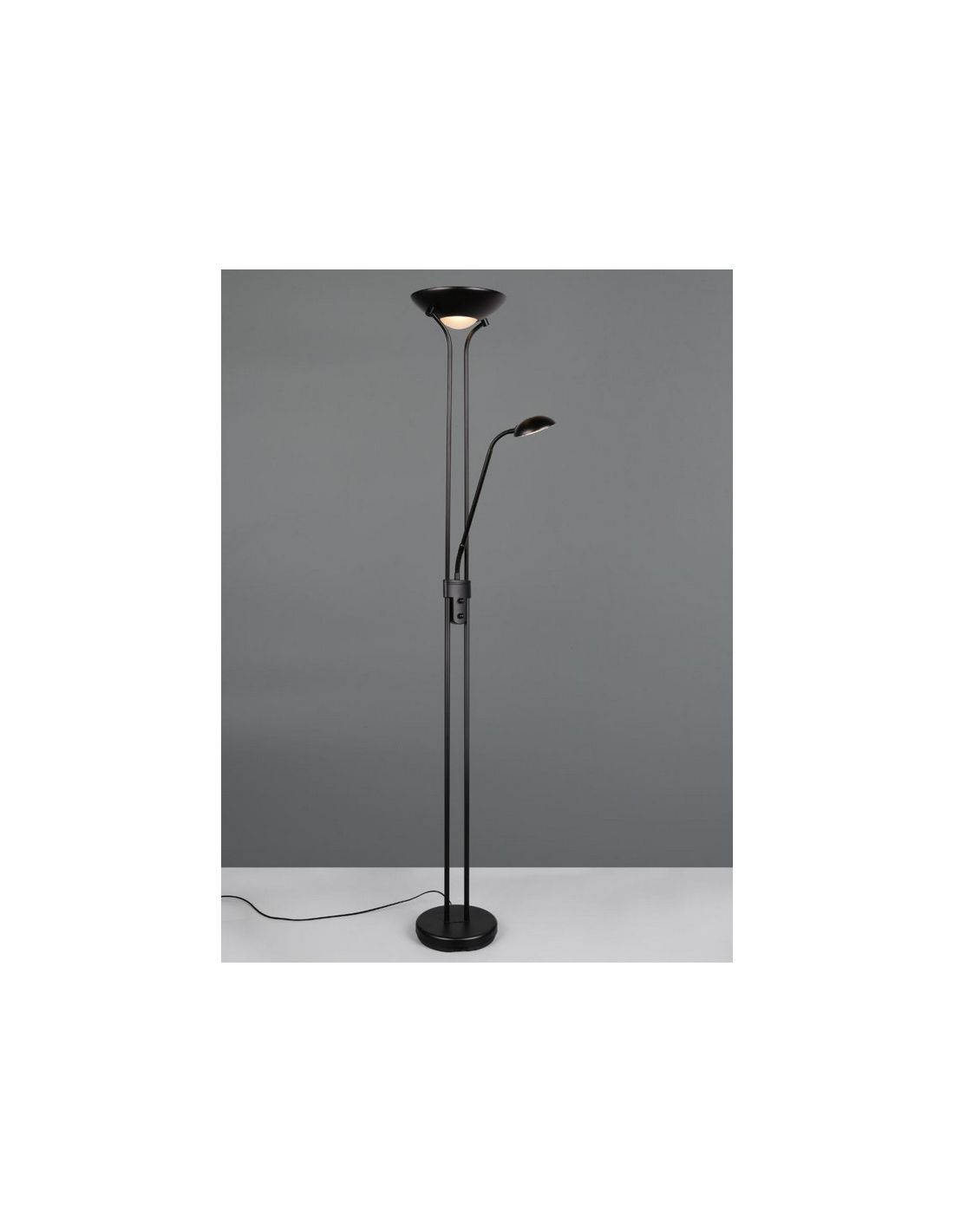 La Lámpara de Pie LED SPOCK combina funcionalidad y diseño moderno con dos luces independientes, un brazo lector ajustable y un difusor principal. Regulable, con luz cálida de 3000K y un consumo eficiente de 5W y 19W.