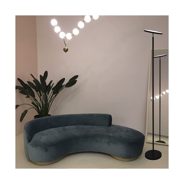 La Lámpara de pie LED Denzel de CristalRecord es una solución de iluminación elegante y funcional para cualquier estancia. Su estructura de metal negro y su diseño estilizado la convierten en un complemento decorativo ideal para ambientes modernos y sofisticados.