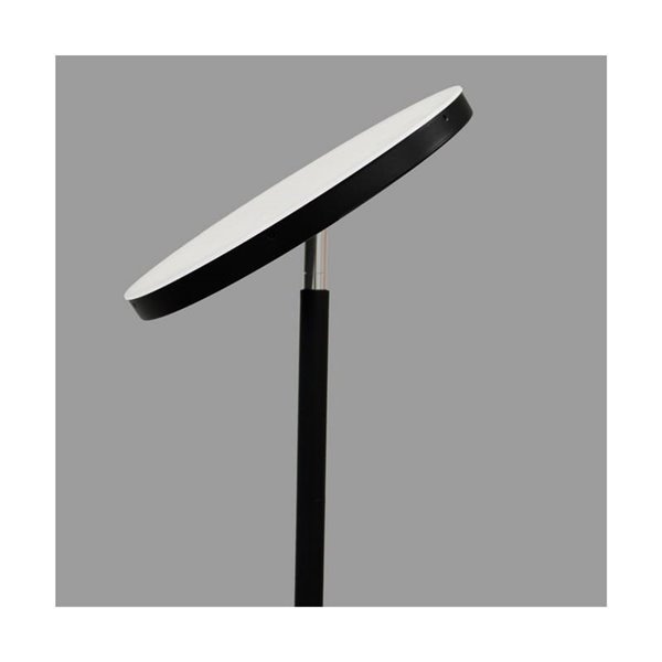 La Lámpara de pie LED Denzel de CristalRecord ofrece una iluminación versátil con una potencia de 24W y un flujo luminoso de 2200 lúmenes. Su diseño en metal negro aporta elegancia y modernidad a cualquier espacio. La lámpara permite ajustar la temperatura de color entre 2700K, 4000K y 6500K, adaptándose a diversas necesidades de iluminación. Incluye un mando a distancia para un control cómodo de sus funciones.