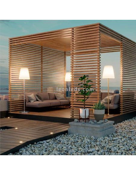 Es una lámpara de pie LED de fácil y rápida instalación. Incluye manual de instrucciones y dispone de una protección contra el agua y el polvo de nivel IP65, por lo que podemos instalarla en cualquier espacio independientemente de la humedad, el polvo o la luz solar.