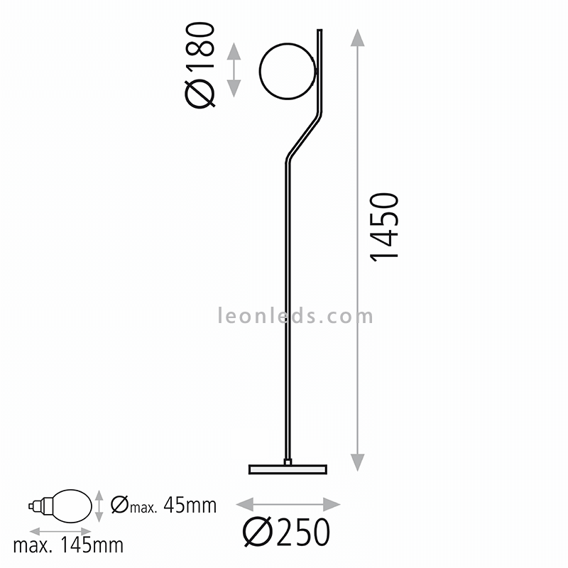 La lámpara de pie de Maui está pensada para iluminar espacios singulares y seduce por un diseño que llama mucho la atención. Gracias a su estilo vintage que podemos encontrar con acabado en oro o en negro con tulipa esférica en cristal opal blanco, es una opción a tener muy en cuenta a la hora de decorar e iluminar nuestro hogar. Cuenta con interruptor de encendido en el cable.