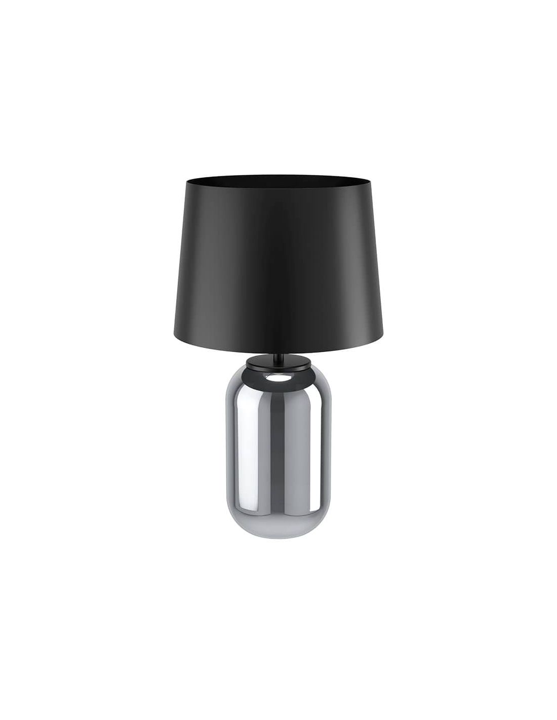 Esta lámpara de sobremesa es original y pega en cualquier espacio gracias a su vidrio negro transparente. Además su pantalla cónica realizada en metal de color negro te encantará por su versatilidad y sutileza.
