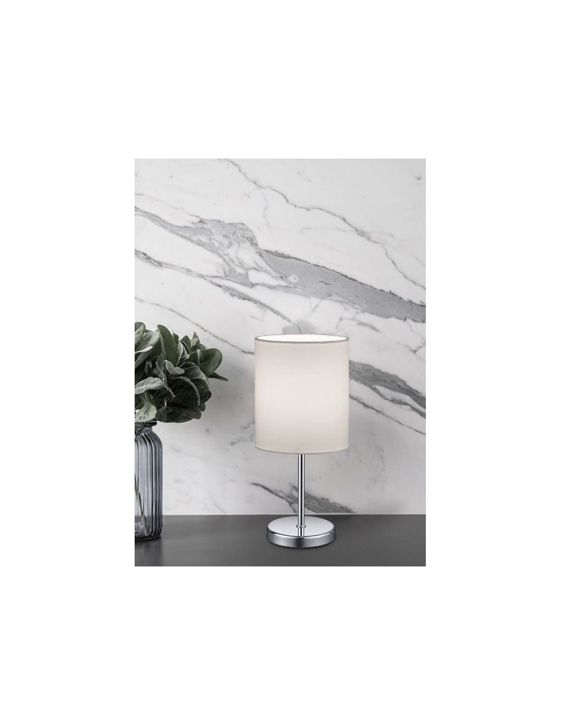 La lámpara de sobremesa JERRY combina la sencillez y la elegancia en un diseño atemporal. Con una base cromada y una pantalla de tela blanca, crea un ambiente acogedor en cualquier espacio. Perfecta como luz complementaria en la sala de estar o como lámpara de mesilla en el dormitorio.
