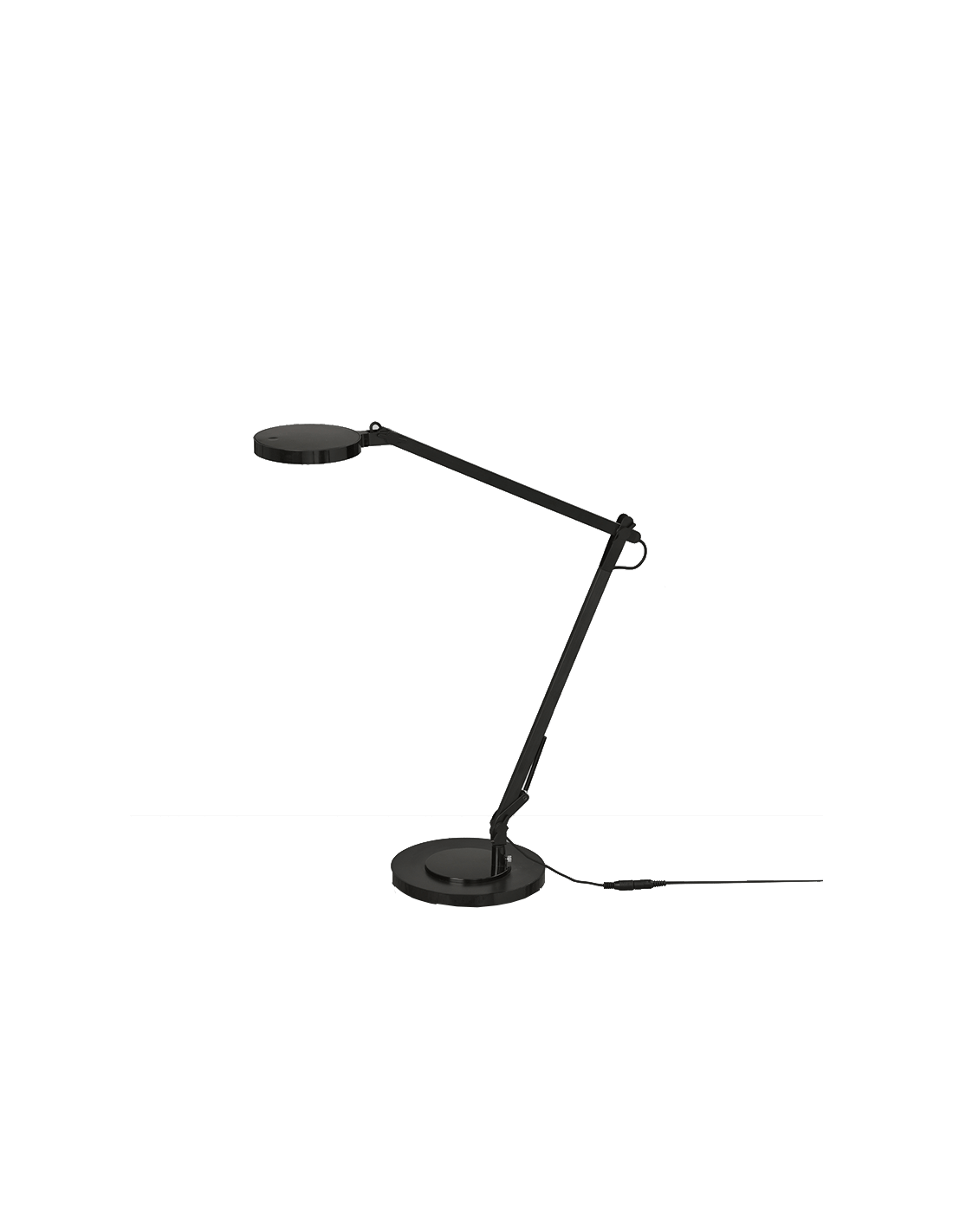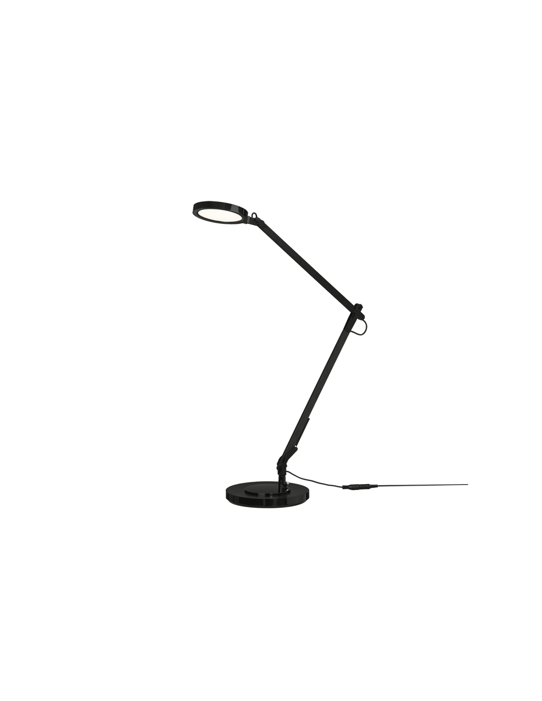 La lámpara de sobremesa Luxa en color negro mate funciona con una bombilla LED de 11W que viene incluida en el embalaje, para proporcionar una temperatura de color 3.000K my agradable y cálida con un flujo luminoso de 700 lúmenes.
