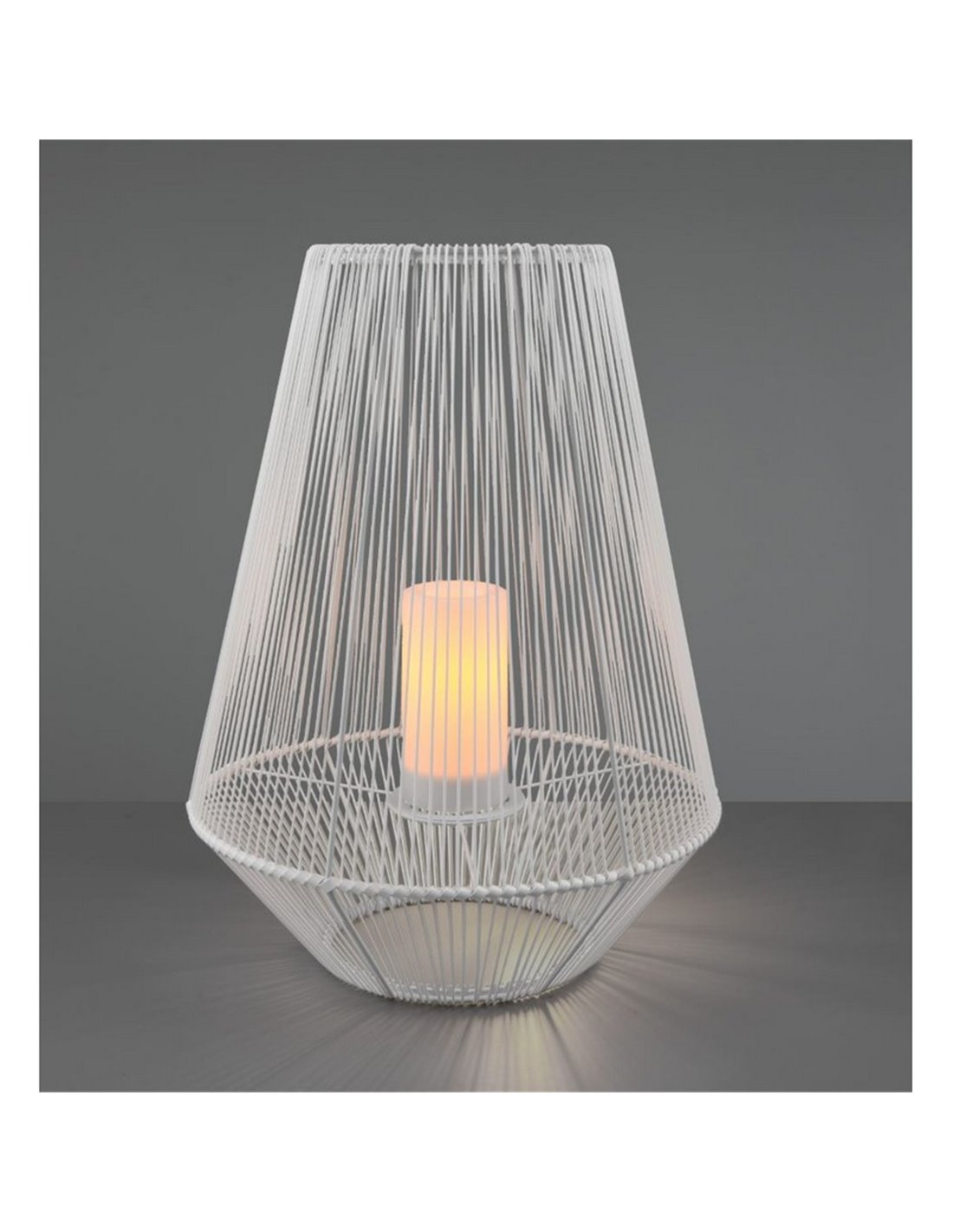 La lámpara de sobremesa LED MINEROS es una solución decorativa para iluminar exteriores con un ambiente cálido y acogedor. Su diseño en color blanco, con forma de cesta moderna, aporta un toque elegante mientras su efecto de llama imita el parpadeo de una vela real. Gracias a su tecnología solar y batería recargable, ofrece iluminación sin necesidad de cables.
