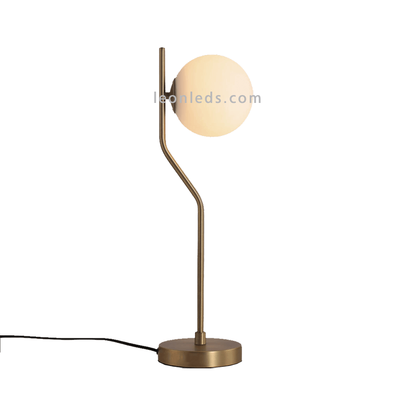 Si buscas una lámpara de sobremesa, esta puede ser la definitiva: la lámpara Maui, se compone por una estructura fabricada en metal con acabado en oro viejo y difusor esférico en cristal opal. También se encuentra disponible en negro y tiene unas medidas de 740mm x 230mm.