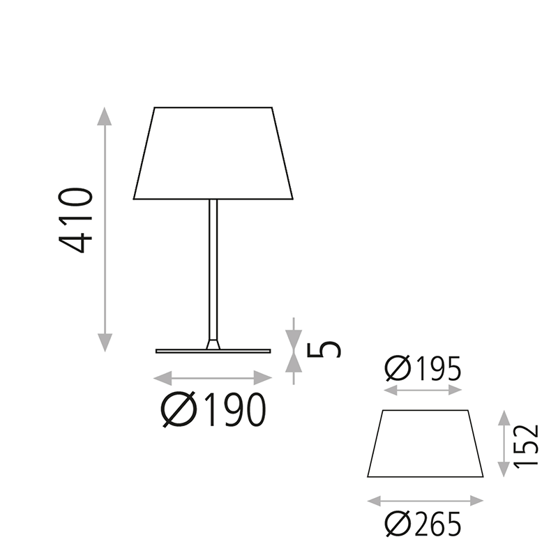 Este modelo presenta una altura de 41 centímetros y un diámetro máximo de su campana de 26,5 centímetros. Se sujeta bajo una base de 19 centímetros de diámetro.