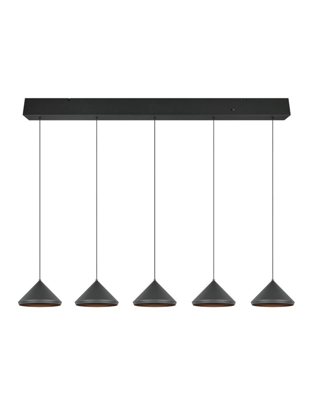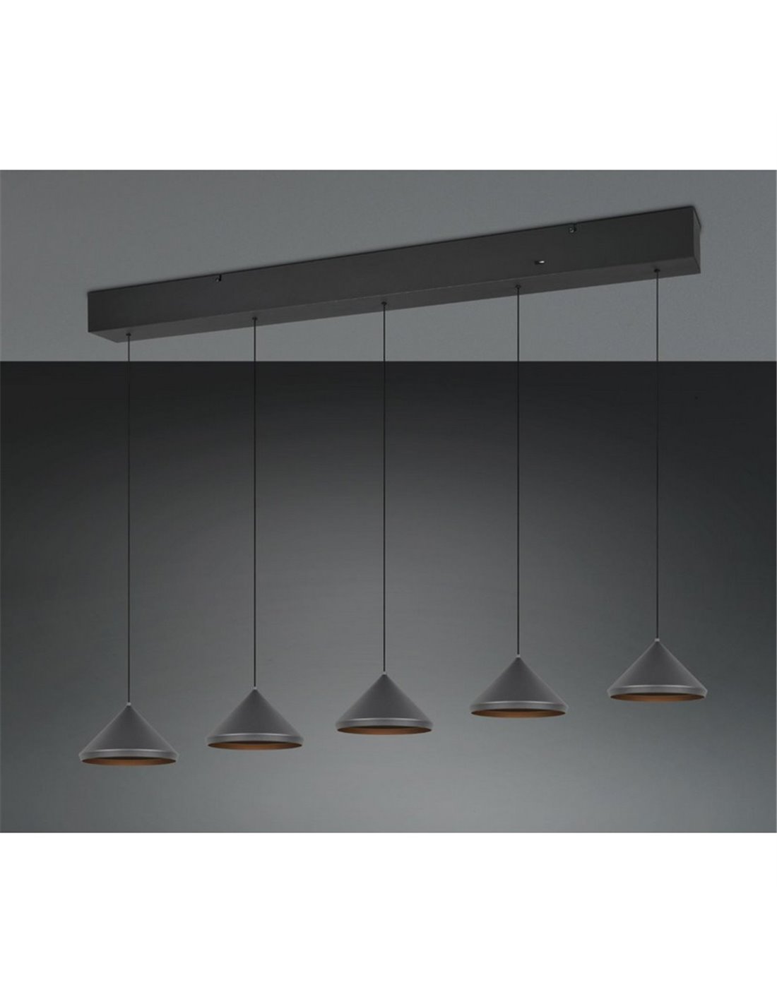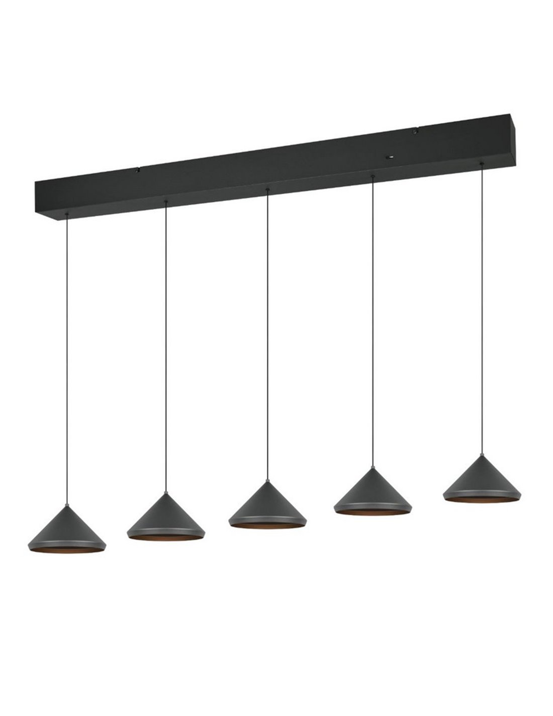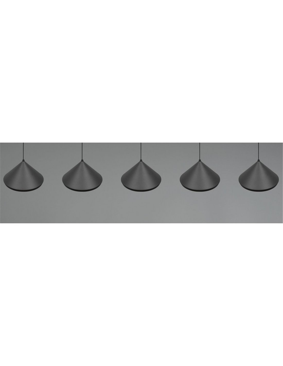 La lámpara de techo LED LAGUNA negra de 5 luces es una elección perfecta para quienes buscan un colgante elegante, regulable en altura y con tecnología de iluminación personalizable.