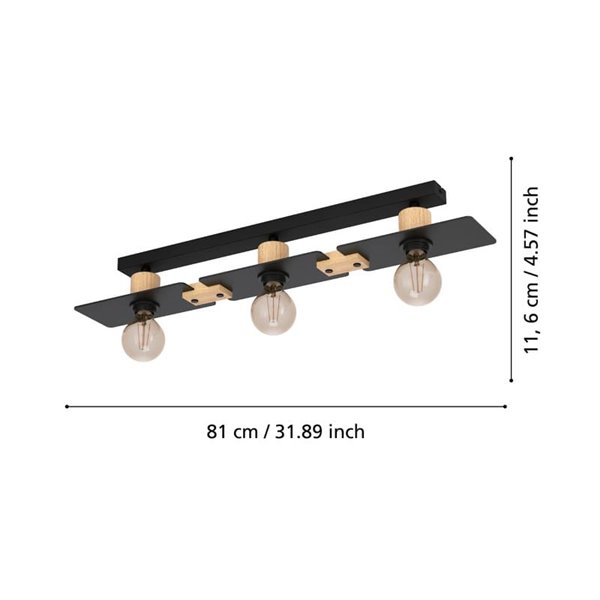 Lámpara de techo BRAMERTON de 3 luces con detalles en negro y madera E27