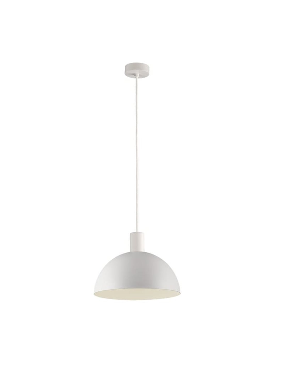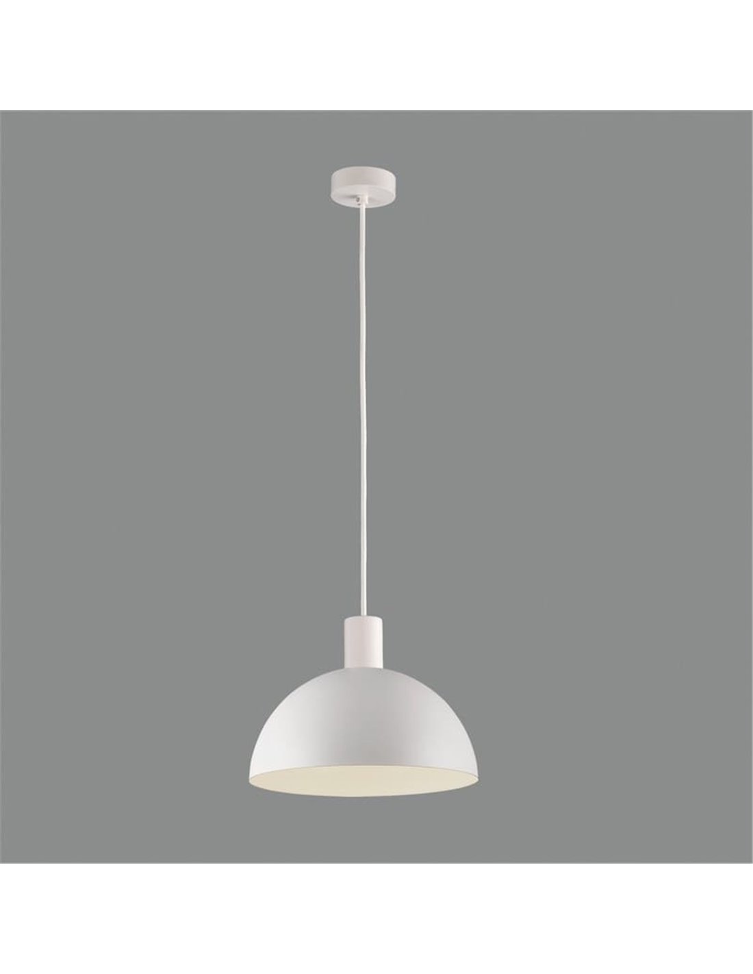 Lámpara de Techo Colgante TIGA pequeño Ø25cm E27 15W, con acabado en Blanco texturado. Disponible en dos acabados interiores. Compatible con bombilla E27 de hasta 15W. Esta lámpara colgante elegante y moderna es perfecta para cualquier espacio interior.