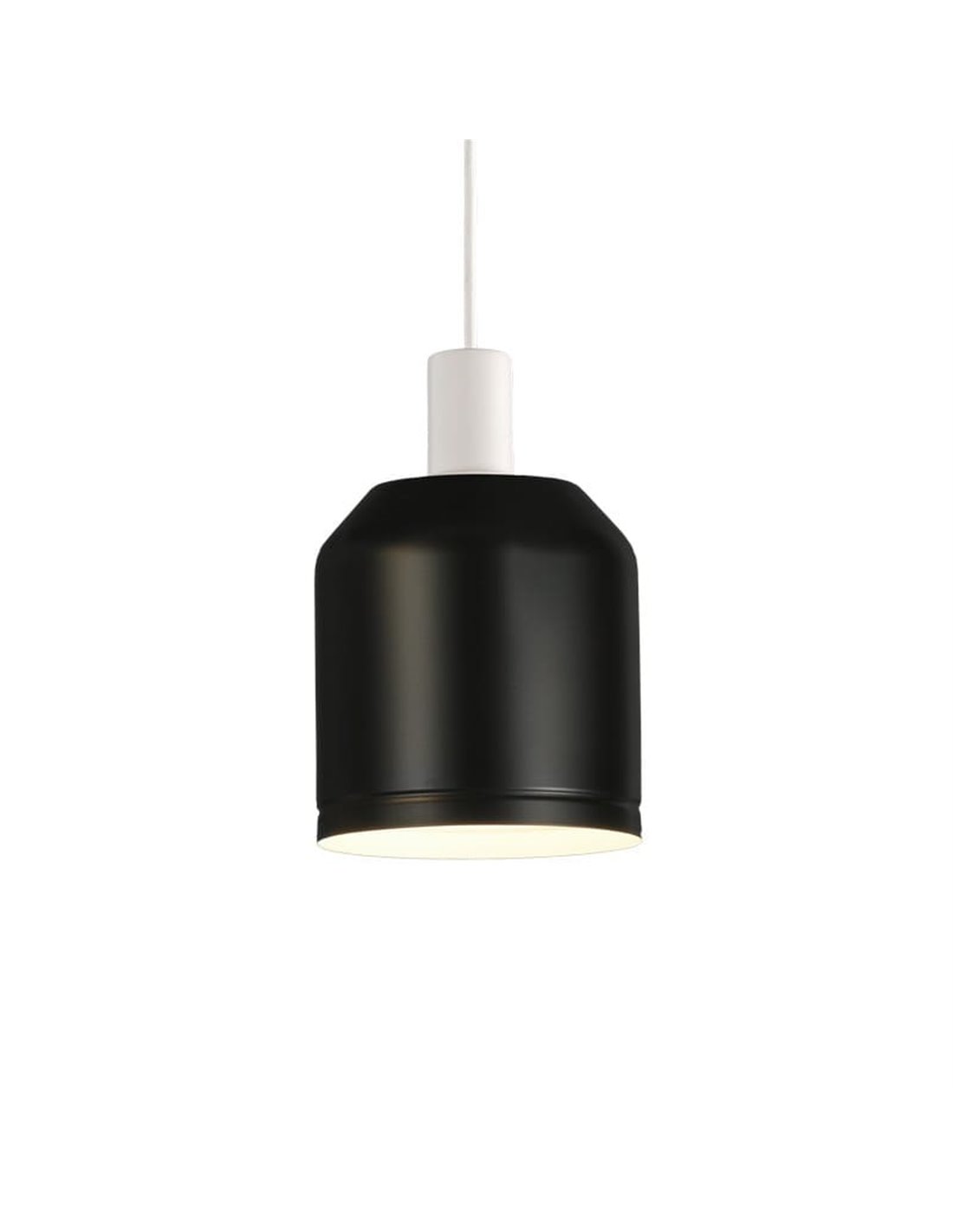La lámpara de techo colgante TURKANA en negro con kit blanco texturado utiliza una bombilla LED E27 de 15W. Dimensiones: ↕ 240Cm | Ø 16,5Cm. Contraste único para cualquier espacio.
