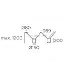 Es una lámpara de techo colgante con estilo moderno y contemporáneo que aportará presencia y elegancia a tus decoraciones. Necesita de la instalación de 2 bombillas E27 con 23W máximo de potencia y una medida máxima de 120/100 mm (no incluidas). Sus pantallas quedan suspendidas de un cable de color negro con embellecedores del mismo color que se instalan en el techo. Dispone de punto de luz lateral perfecto para espacios que no disponen de punto de luz central, permitiéndonos personalizar el lugar desde el que se emitirá la luz sin necesidad de seguir el punto de luz del techo. Podemo desplazar cuanto queramos el punto de luz de la lámpara.