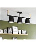 Lámpara colgante LACEY de 3 pantallas negras y detalles en madera, 3xE27