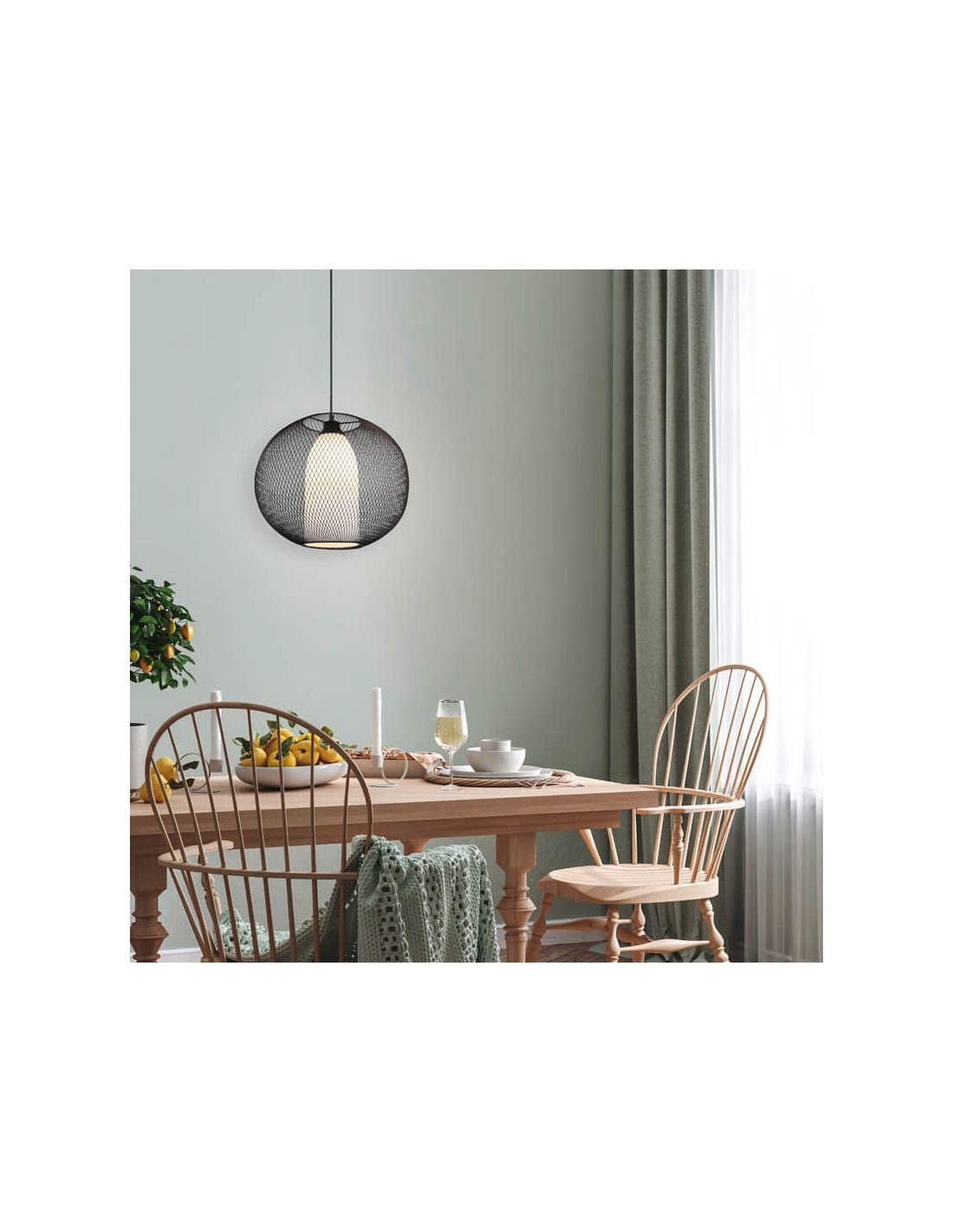 La lámpara Filo colgante funciona con una bombilla E27 de 60W de potencia para iluminar de manera completa las estancias desde su montaje en techo. Además, gracias a su certificación IP20 frente a sólidos de tamaño superior a 12 mm de tamaño, es una lámpara colgante resistente.