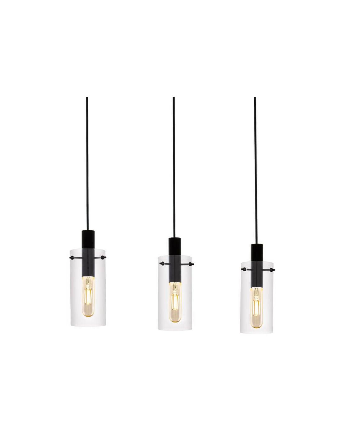 La lámpara Montefino de 3 focos es la mejor opción para hogares o espacios comerciales que necesiten iluminación desde el techo a través de una lámpara colgante con pantallas totalmente transparentes. Aportará a nuestras decoraciones un estilo clásico y muy elegante que no dejará indiferente a nadie. Este diseño en formato alargado de la base de la lámpara, junto a las pantallas cilíndricas de cristal, es perfecto para iluminar mesas de comedor alargadas o mostradores de tiendas. Dispone de una altura de 110Cm regulable y personalizable de forma individual.