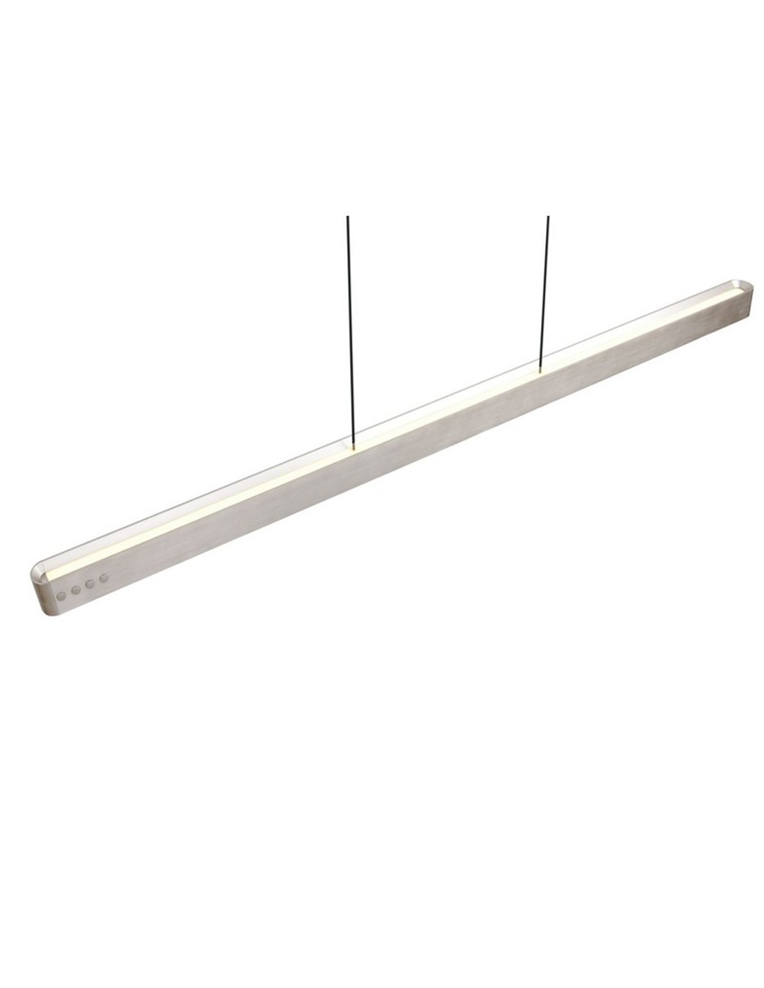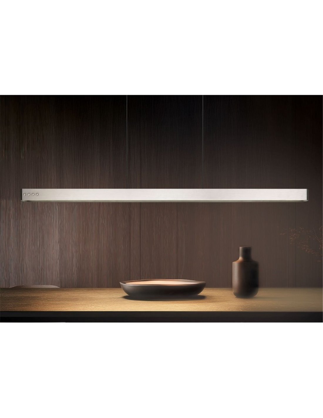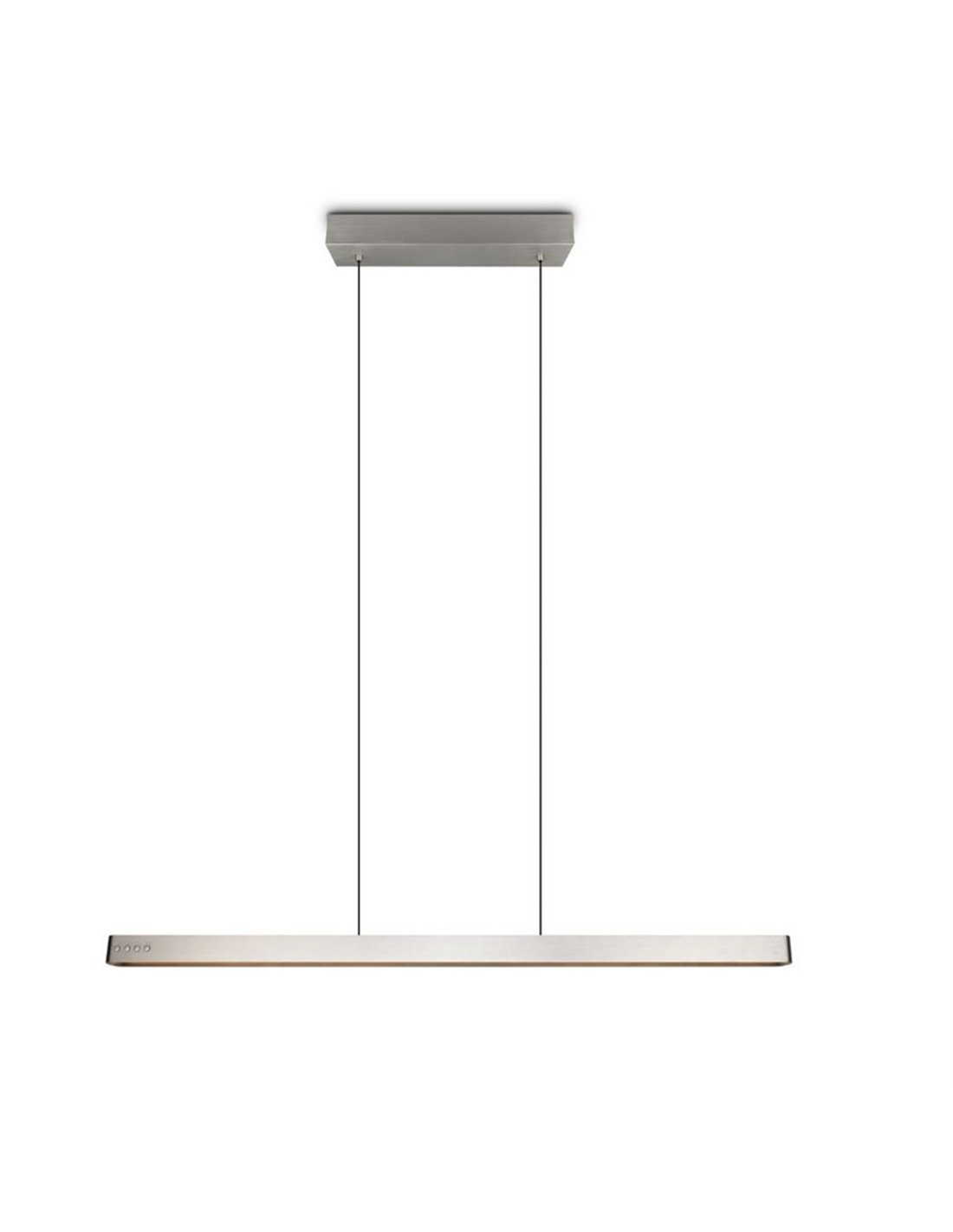 La lámpara de techo LED DONEGAL en elegante acabado níquel combina diseño lineal contemporáneo con tecnología avanzada. Gracias a su motor eMove, la altura puede ajustarse de manera automática y precisa con solo pulsar un botón, lo que la convierte en una opción práctica para salones, comedores, zonas de trabajo o salas de estar.