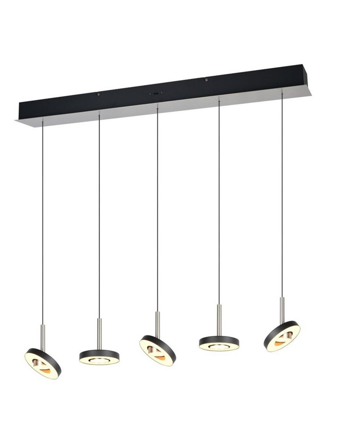 Con un consumo reducido y una alta potencia lumínica, la lámpara GUANO 5x8W es perfecta para iluminar mesas alargadas o zonas de comedor. Su estructura suspendida con cinco focos LED distribuye la luz de forma uniforme y su tonalidad regulable crea distintos ambientes según el momento. Un equilibrio perfecto entre tecnología, diseño y confort visual.