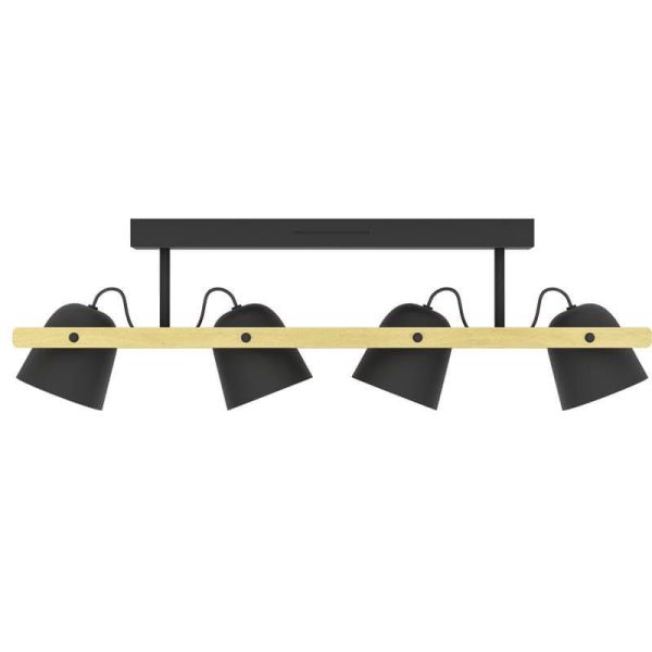 Plafón de estilo nórdico negro y madera Hornwood 4xE27