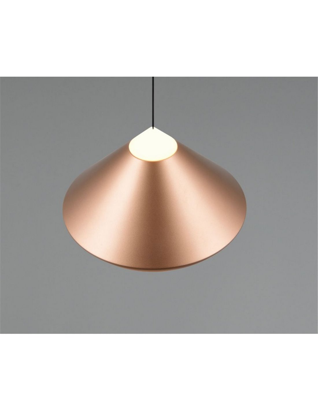 La lámpara de techo LED LAGUNA en cobre de 1 luz Ø30 cm es ideal para quienes buscan un colgante con estilo cálido, regulable en altura y con iluminación personalizable.