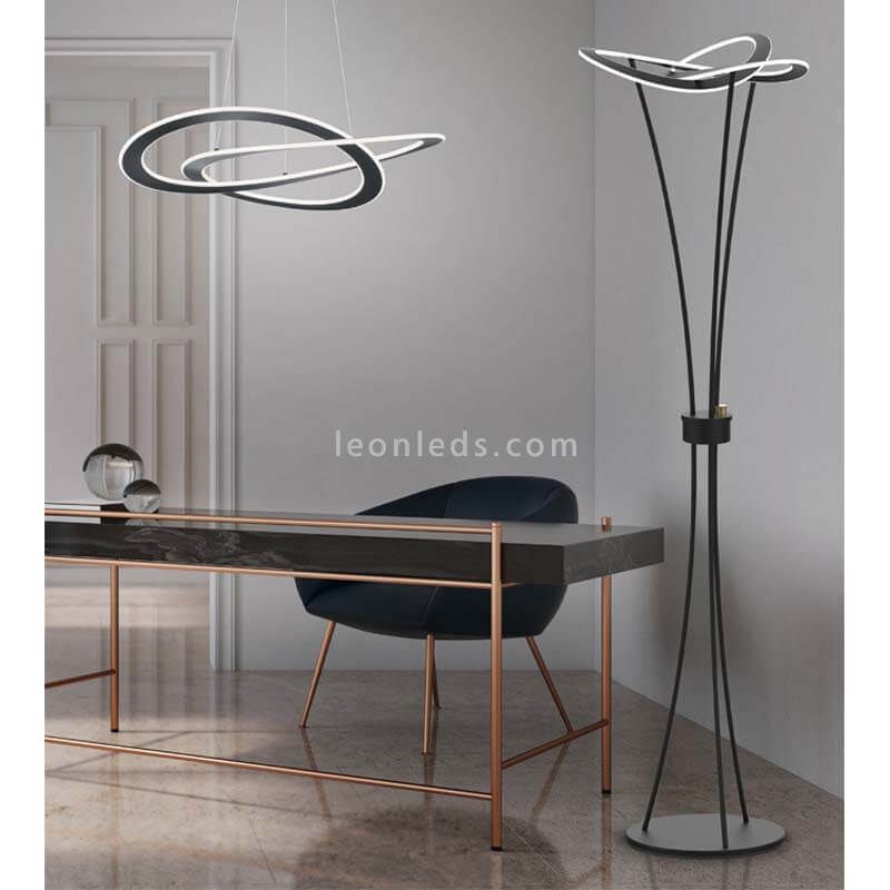 Lámpara de Techo LED moderna de la Serie Oakland con una potencia de 52W, una intensidad lumínica de 5.650Lm equivalente a mas de 580W de los antiguos, con un diámetro de pantalla de Ø 71Cm y una altura regulable de hasta 150Cm.