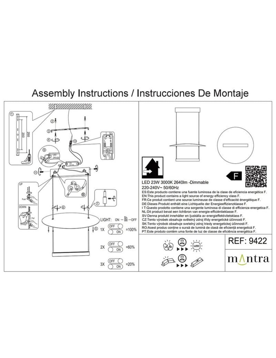 Perfecta para salones, comedores, cocinas modernas, mesas redondas o rectangulares. Su diseño limpio y su amplio difusor aportan luz uniforme y ambiente cálido.