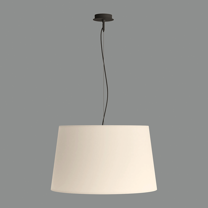 La colección Stilo recoge distintos modelos y tamaños. Esta Lámpara Colgante Stilo de 62 centímetros sigue el diseño clásico y sencillo de esta colección gracias a su estructura en color negro texturado y su preciosa campana en color blanco de algodón.