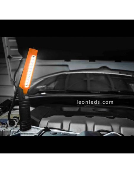Linterna LED de inspección Osram PRO LEDinspect SlimLine 280 con base de carga y 2 luces, 280lm + 70lm con un grado de protección contra el Polvo y el agua de IP42 y una resistencia a impactos de IK04.