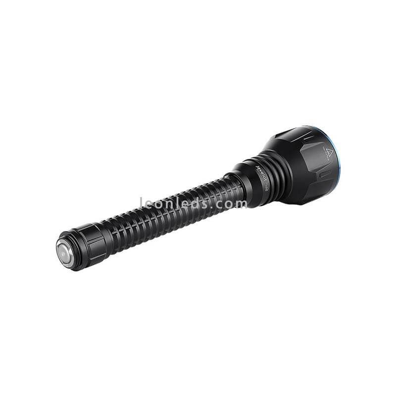 Esta linterna Javelot turbo tiene doble interruptor, interruptor lateral y trasero 3 en 1 que se ha elevado un poco con respecto a la versión anterior de la linterna javelot Pro. Otras de las mejoras que incluye es que se ha ampliado el haz de luz de 1080 a 1300 metros y que el paquete de 2 baterías 21700 de 5000 mAh que incluye sustituye a las 2 baterías anteriores de 3500 mAh 18650.