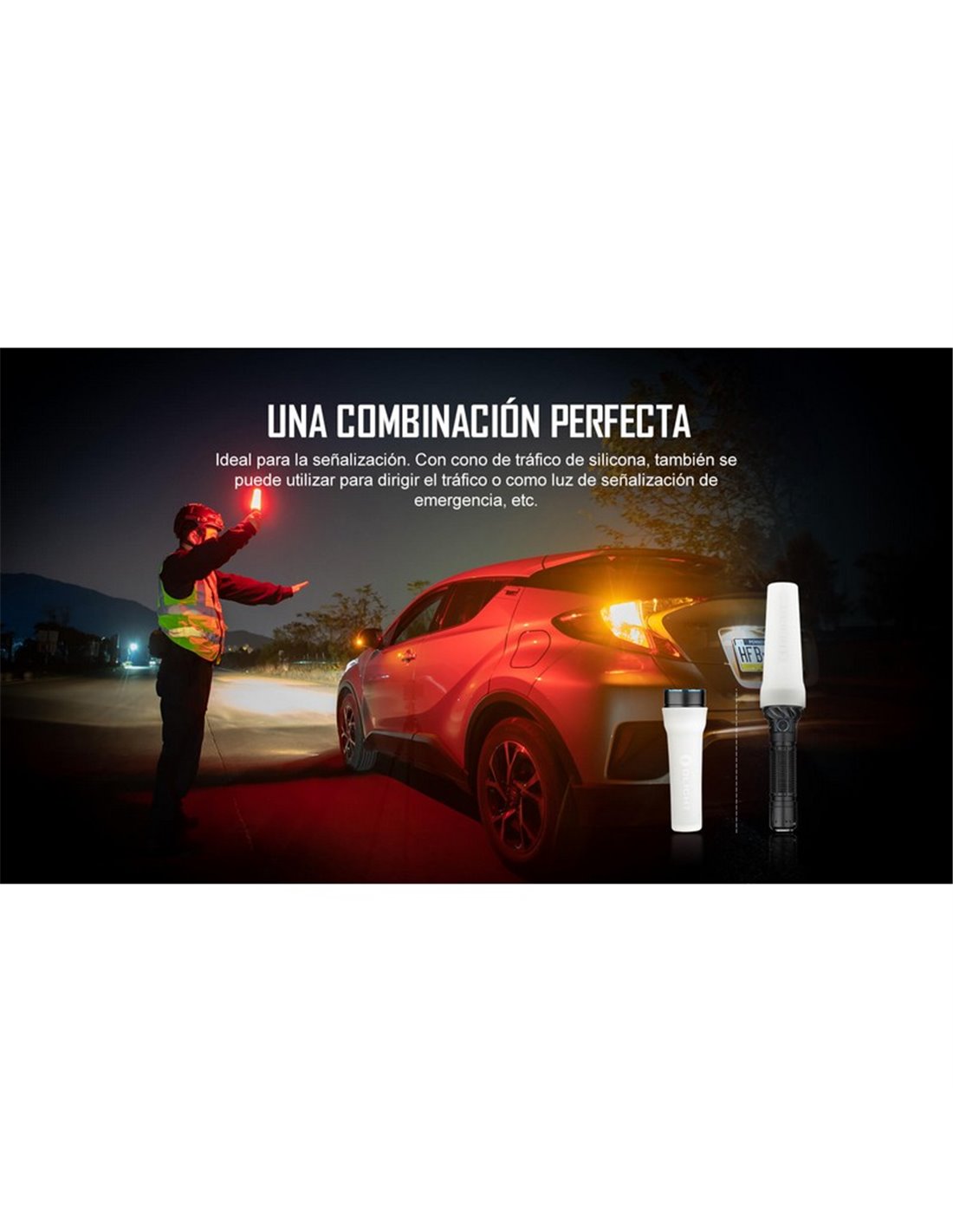 Equipada con luz blanca fría y tres colores adicionales (rojo, verde y azul), la FREYR se adapta a múltiples aplicaciones: visibilidad nocturna, señalización de tráfico, operaciones tácticas y situaciones de emergencia. Incluye un cono difusor para usarla como baliza o luz de señalización.