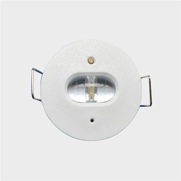 La Luz de evacuación LED permanente K-MINI empotrable Ø40mm 195Lm 5000K de Sagelux es una solución compacta y eficiente para la iluminación continua en rutas de evacuación. Diseñada para ofrecer una iluminación fiable en todo momento, su diseño empotrado y acabado en blanco permiten una integración discreta en cualquier entorno arquitectónico.