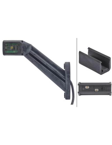 Luz de gálibo LED de alta resistencia con brazo de goma, 12/24V, 4 LEDs, cable de 500mm con conector Quick Link, homologada ADR/GGVS/ECE, ideal para montaje lateral izquierdo o derecho. Recambio OEM de Cobo, Kogel, Krone y Schmitz.
