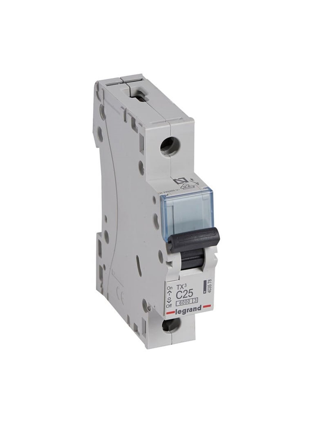 El magnetotérmico Legrand TX³ 403578 protege tus circuitos frente a sobrecargas y cortocircuitos. Modelo 1 polo de 25 A, curva C y 6 kA de poder de corte, indicado para líneas de uso general y equipos con picos moderados (horno, aire acondicionado, tomas dedicadas) en instalaciones 230 V~. Se monta en carril DIN, ocupa 1 módulo y permite conexión por barra colectora y cable con bornes atornillados. Diseño IP20, libre de halógenos y rearmado sencillo mediante palanca frontal para restablecer el servicio con seguridad.