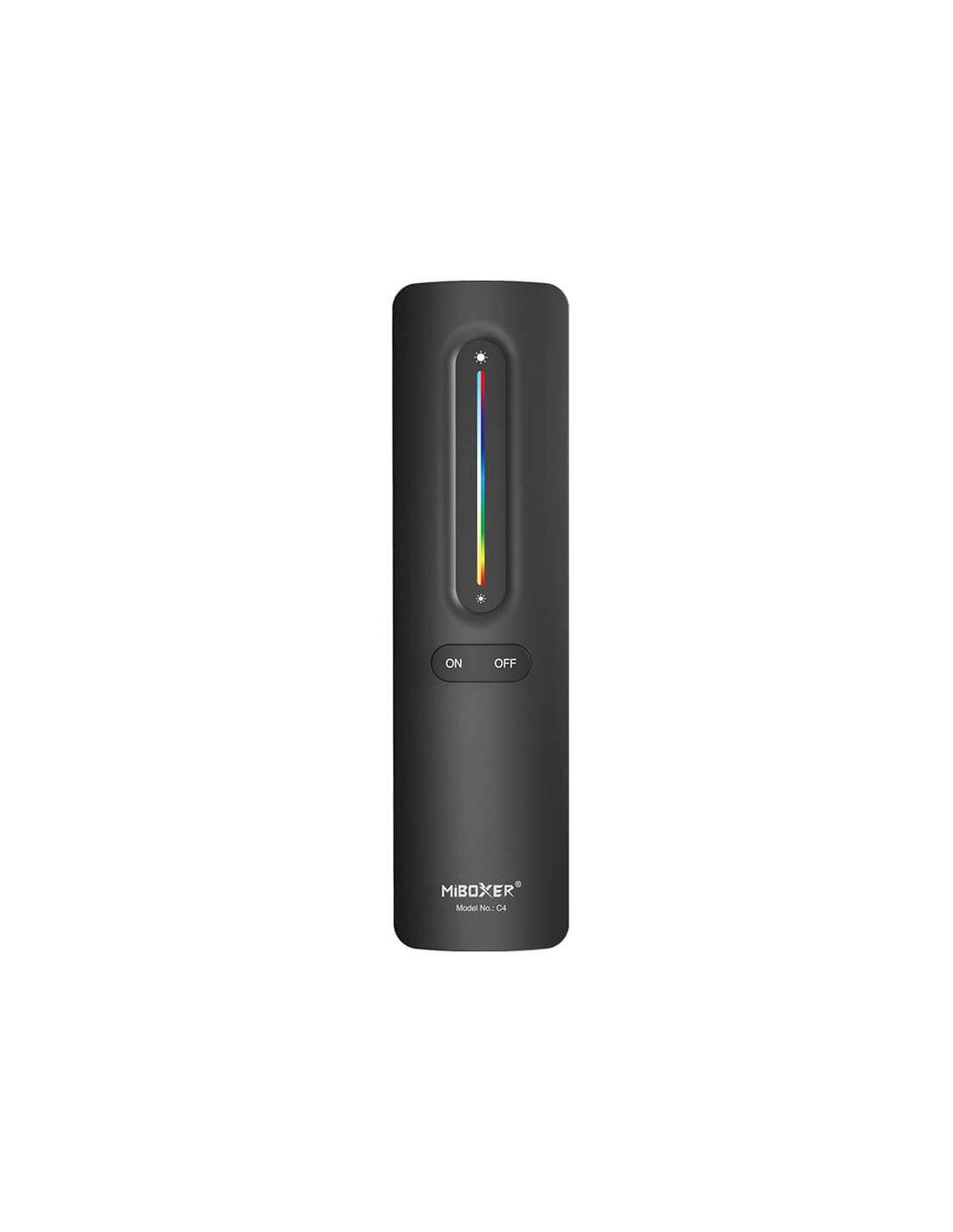 l mando MiBoxer C4 RF 2.4GHz es un controlador inalámbrico diseñado para gestionar de forma precisa sistemas de iluminación LED RGB+CCT. Permite un control total de la iluminación desde un único dispositivo, ajustando colores RGB, saturación, brillo y temperatura de color del blanco de manera fluida y estable.
