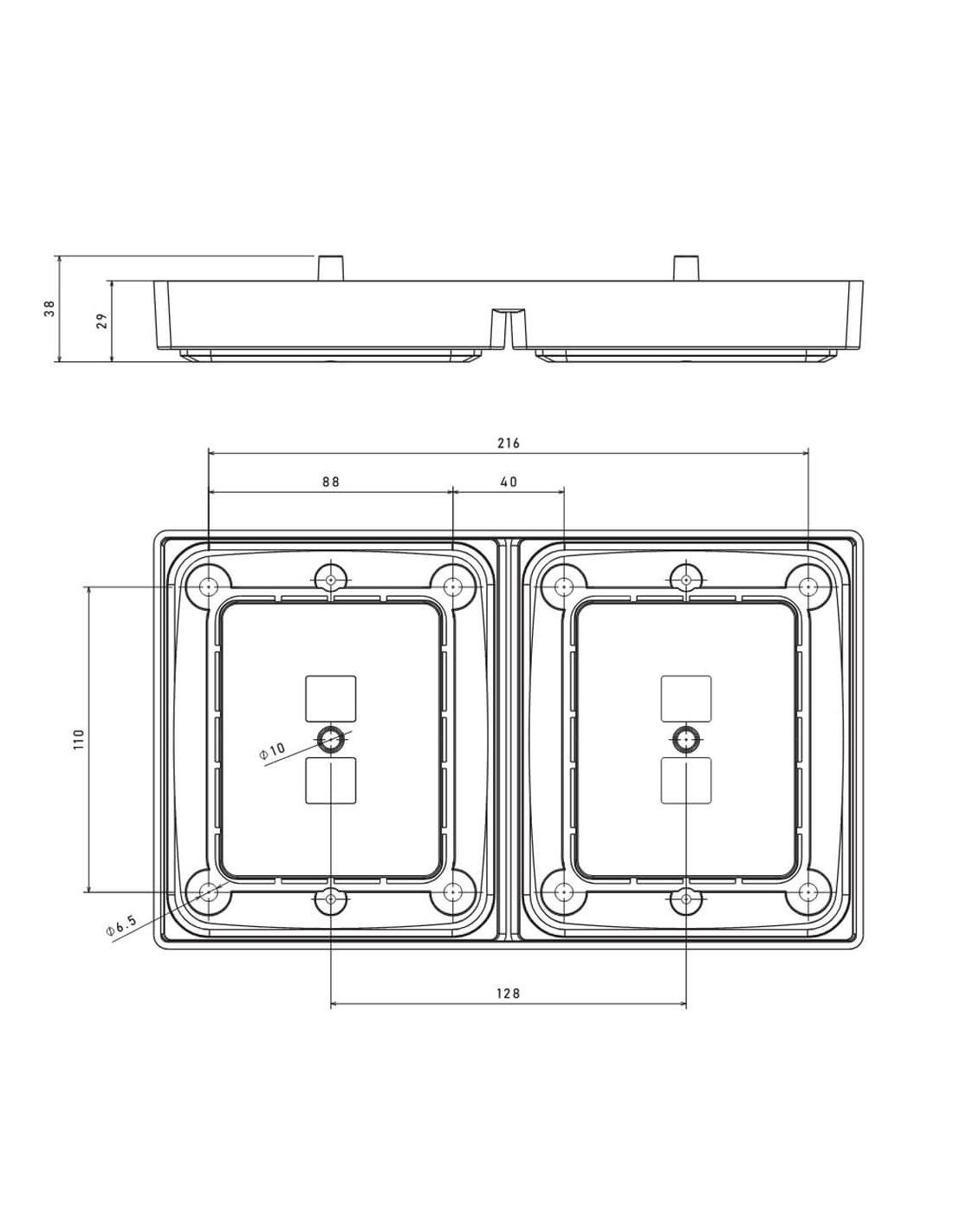 El marco doble Fristom (FR2) está diseñado para instalar dos pilotos traseros LED FT-323 o FT-324 en una misma estructura, facilitando una instalación rápida, alineada y profesional.