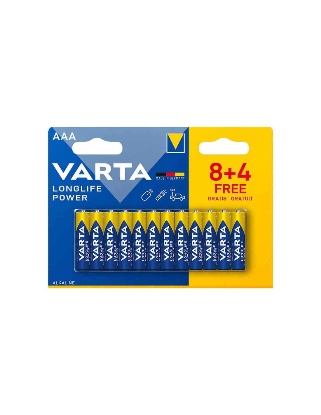 Pack de 12 pilas alcalinas VARTA Longlife Power AAA (LR03), con voltaje de 1,5V y tamaño estándar AAA. Ofrecen máxima durabilidad y potencia estable, perfectas para mandos, juguetes, linternas y pequeños electrodomésticos.