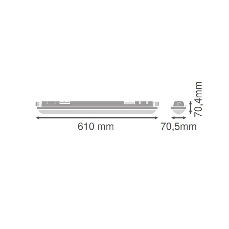 Pantalla LED estanca con una potencia de 21W, una longitud de 60Cm y una intensidad Lumínica de 2.835Lm, disponible con un tono de luz natural 4000K o luz blanca 6500K, sustituye a 2 Tubos de 18W. Gama Value Class y modelo Eco Damp Proof Gen 3 Very Wide 120º.