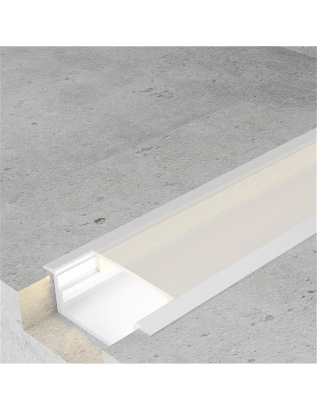 El perfil de aluminio LONG lacado en blanco (2 metros) está diseñado para integrar tiras LED con un acabado enrasado y discreto, perfecto para techos y paredes claras. Se entrega como perfil completo con difusor, 2 tapones y grapas, listo para una instalación limpia y bien rematada.