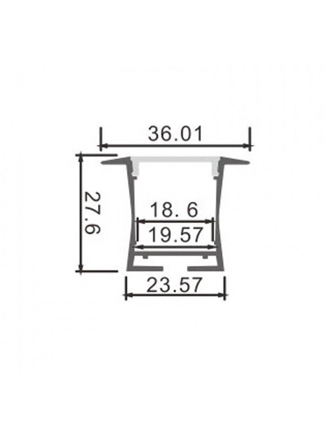 Perfil empotrable de aluminio PHEY para tiras LED 2 metros, con tapas y difusor,...