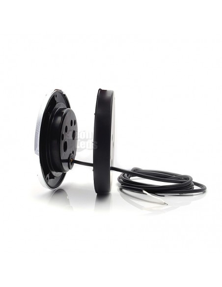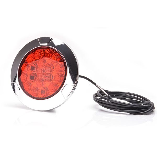 Piloto Antiniebla LED redondo con embellecedor plateado para remolques y camiones valido para instalaciones de 12V y 24V, totalmente homologado.
