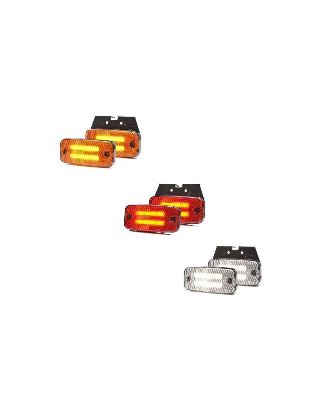 Estos pilotos de LED universales llevan una doble luz para señalizar la parte lateral del camión (color ámbar), la parte delantera del camión (piloto blanco) y la parte trasera (piloto rojo).