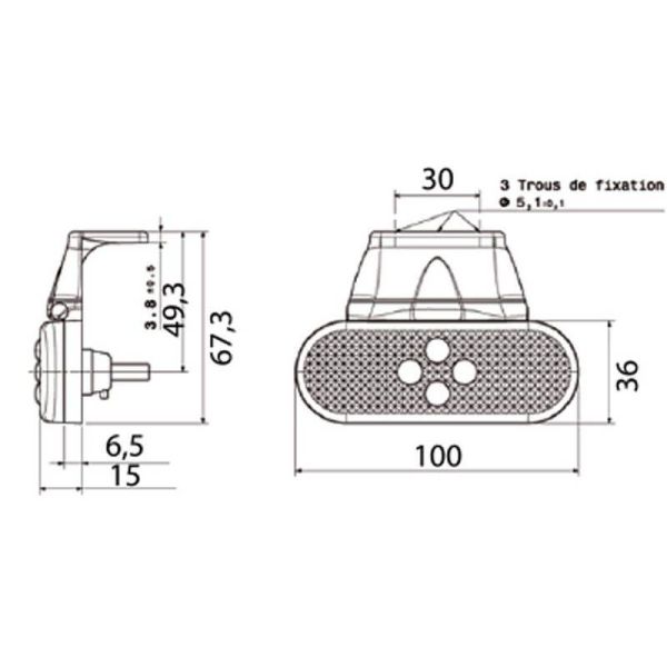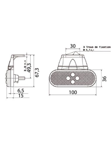 Este Piloto ambar de Vignal SMD04 incluye soporte para instalar suspendido y en instalaciones de 24V, homologación ADR, los agujeros del soporte tiene 3 Cm entre ellos, (Ver dimensiones en una de las fotos).