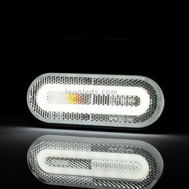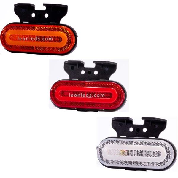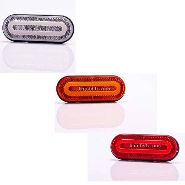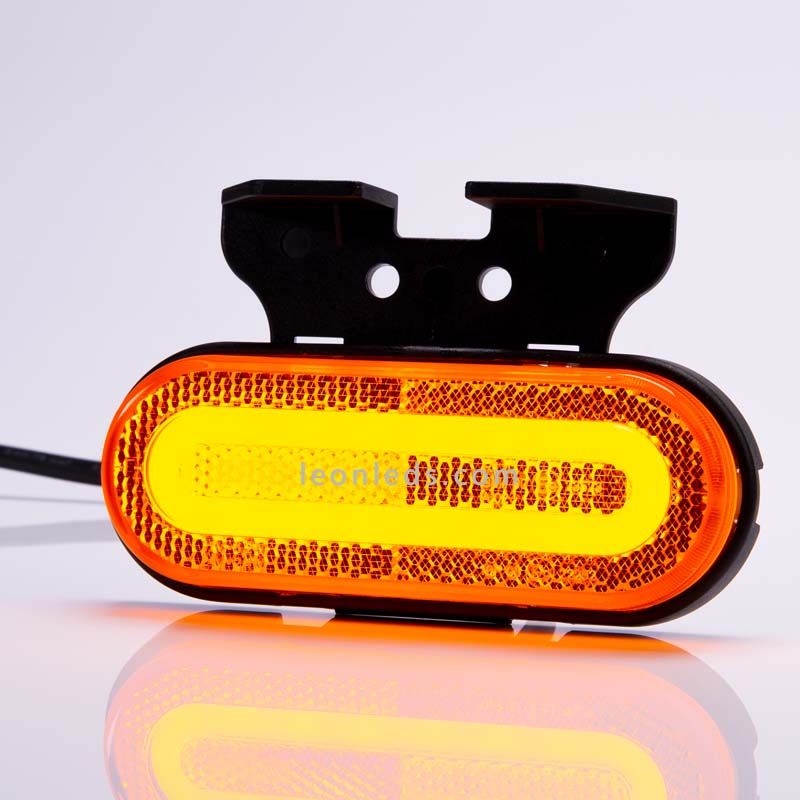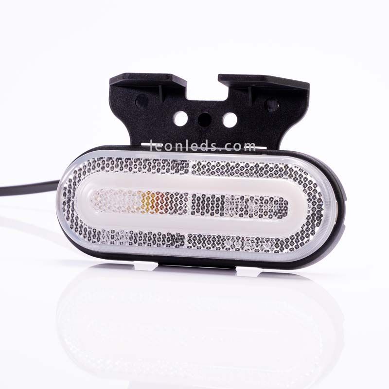 Piloto LED galibo con soporte, efecto Neon y reflectante, disponible en 3 colores, Ambar para el latera, rojo para la parte trasera y blanco para la parte delantera, cuenta con la homologación obligatoria impresa en el cristal. Este Piloto LED Galibo Fristom FT-072 es valido para instalar en instalaciones de 12V y 24V (12-36V), en 12V consume 1,2W (0,1A) y en 24V 2,4W (0,1A), incluye medio metro de cable de 2x0,75mm2 y ofrece un grado de protección contra el agua y el polvo de IP68.