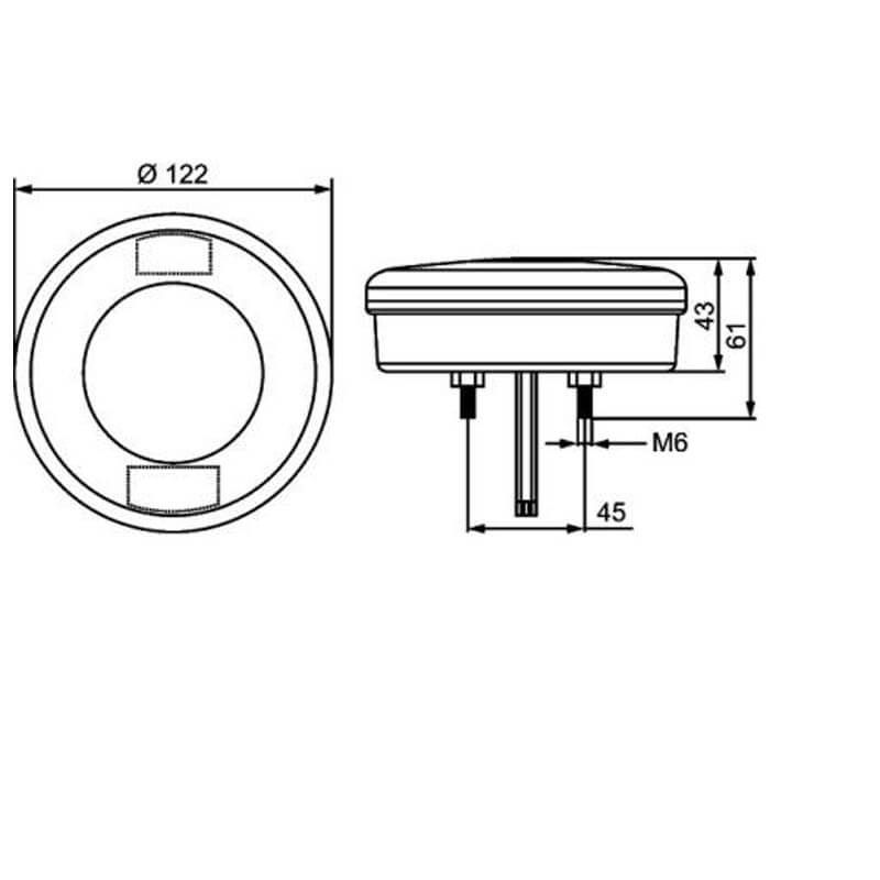 Piloto Trasero redondo LED con 3 Funciones valido para 10V hasta 30V, incluye 26Cm de cable y es totalmente estanco y sumergible IP67. Fabricado en PMMA de alta calidad.