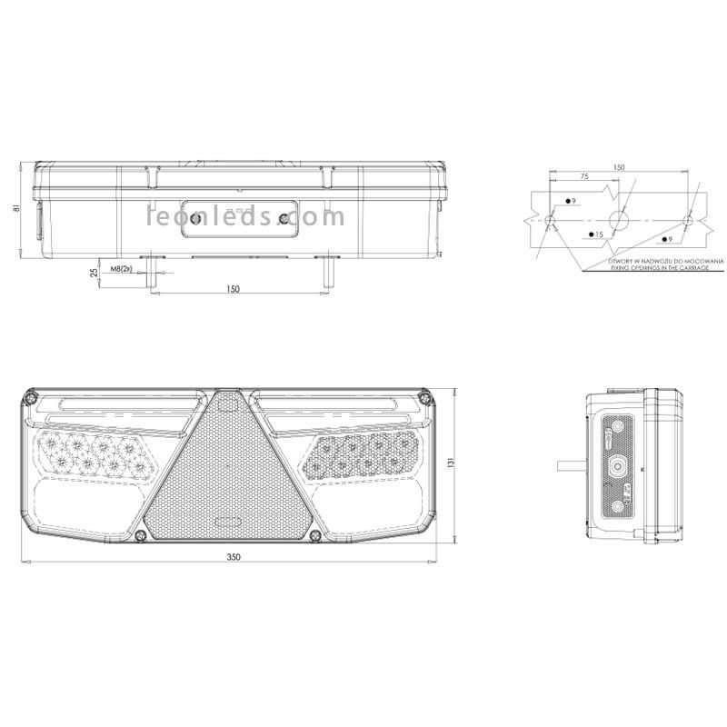 Este Piloto trasero LED cuenta con la función de Stop, posición, marcha atrás, triangulo reflectante, intermitente progresivo y luz de niebla. Este Piloto LED es perfecto para ser instalado en remolques o plataformas de camiones junto con el nuevo cuerno de la misma marca que podrás adquirir pulsando aquí.
