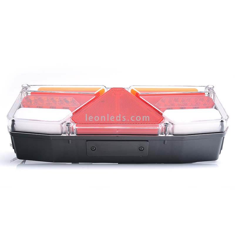 Piloto trasero LED con triangulo reflectante e intermitente dinámico valido para 12V y 24V disponible con 2 metros de cable y con conector de 7 Pin TYCO que puedes selecciona antes de comprar. En accesorios encontraras la hembra para el conector del piloto.