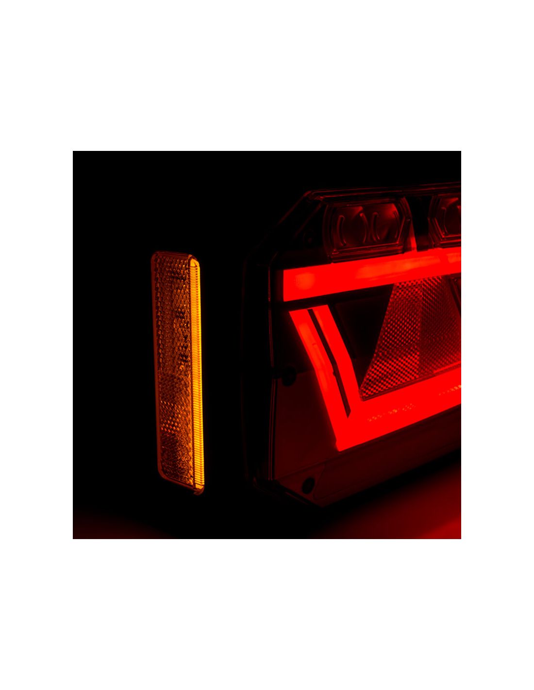 Piloto trasero LED Mavic con triangulo para instalar en la parte trasera de remolques o plataformas con un diseño muy elegante, este modelo es válido para instalaciones de 12 y 24V e incluye 1,5 metros de cable para su instalación. Cuenta con 7 funciones, Posición efecto Neón, Intermitente efecto Neón, luz de niebla, luz de marcha atrás, luz de freno efecto Neón y luz de galibo lateral con reflectante.